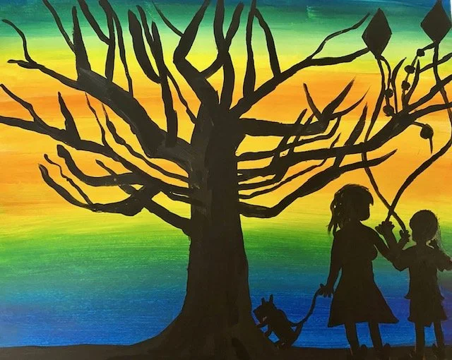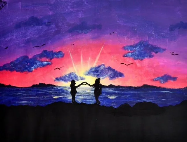 You will learn how to paint the sky gradient background and then choose which silhouette you would like to complete.